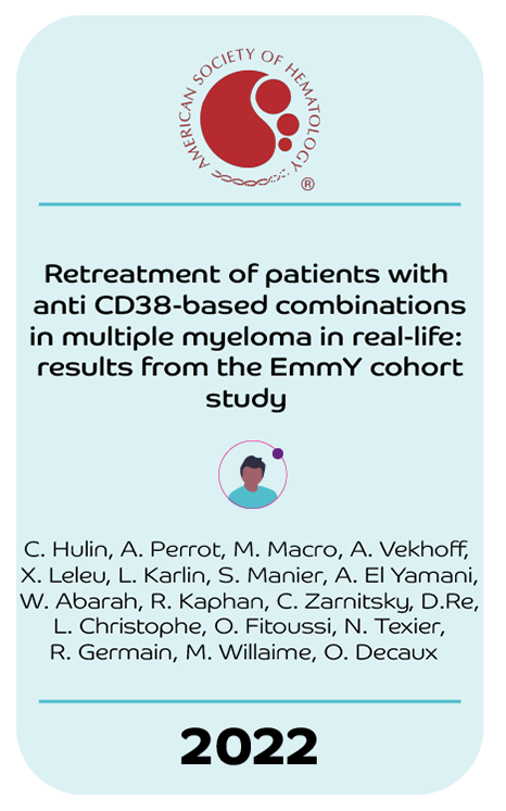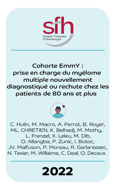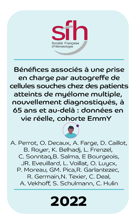 Depuis 2017, Kappa Santé accompagne l’IFM (Intergroupe Francophone du Myélome) dans la conception, la réalisation et l’analyse de la cohorte EmmY (Epidemiology of Multiple MYeloma). L’étude a été proposée à l’ensemble des centres français membres de l’IFM spécialisés dans la prise en charge du myélome multiple. Parmi eux, un échantillon de 73 centres acceptant de participer, a été sélectionné pour mener l’étude.